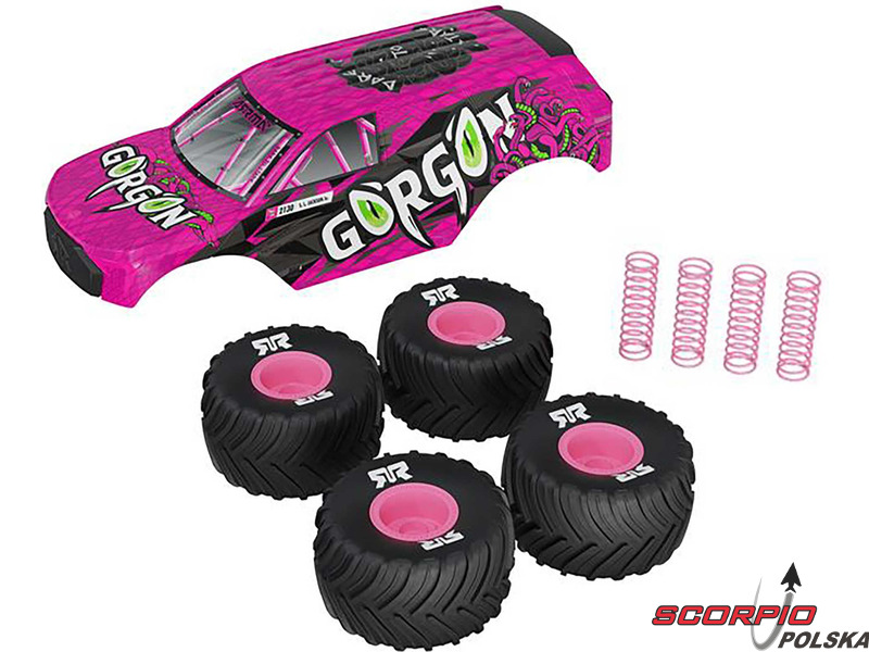 Model samochodu RC Arrma Gorgon Grom w skali 1:16, z napędem 4WD, funkcjami Smart i prędkością do 30 km/h. Precyzyjnie skonstruowany, mały, zabawny model popularnego typu monster truck. Stylowa karoseria, całkowicie gotowy do jazdy, wraz z akumulatorem i ładowarką.