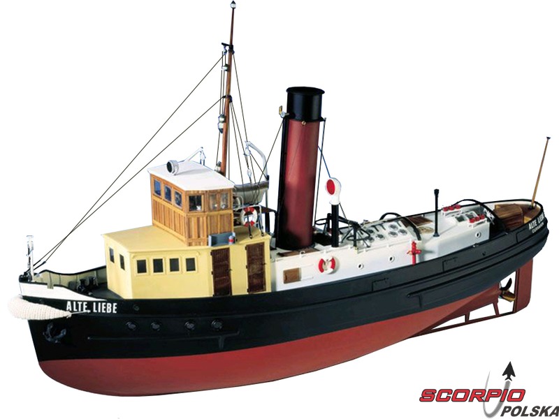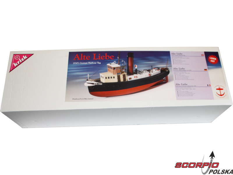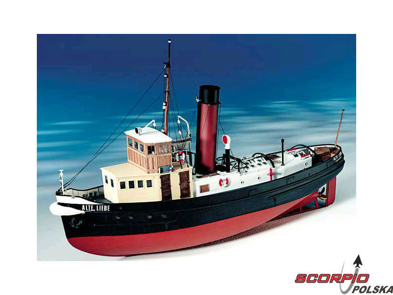 Zestaw do budowy modelu CALDERCRAFT Alte Liebe 1931 - holownik portowy w skali 1:25. Przez trzydzieści lat, aż do 1960 roku, parowiec Cuxhaven „Old Love” był częścią codziennej pracy w porcie jako łódź strażacka i holownik. Silnik parowy miał moc 360 KM, załoga składała się z kapitana, inżyniera, 3 strzelców i 6 marynarzy.