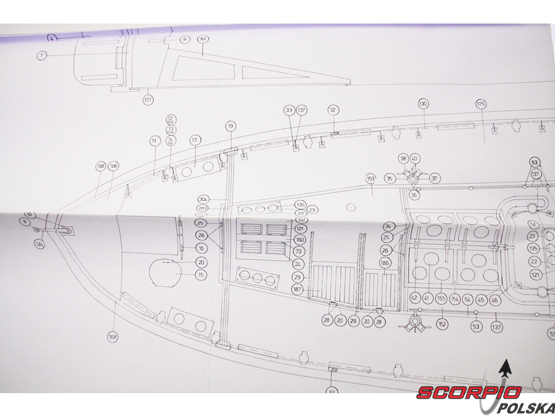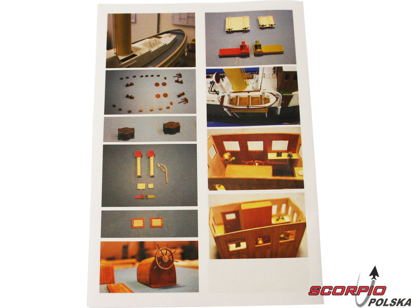 Zestaw zawiera komplet rysunków modelu w skali 1:1 oraz instrukcję z przebiegiem prac i kolorowymi zdjęciami poszczególnych detali. Rysunki w skali przedstawiają zespoły i ich montaż. Wielojęzyczna procedura budowy przedstawia logiczny montaż poszczególnych komponentów.