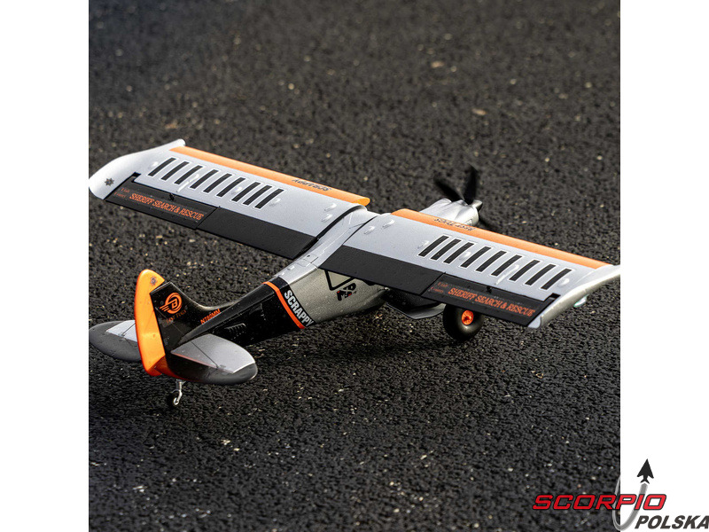 Micro Scrappy ma gotowe, luksusowe wykończenie z atrakcyjnymi naklejkami. Model ma jednoczęściowe skrzydło, które można łatwo zamontować za pomocą jednej śruby. Wszystko to sprawia, że można szybko doświadczyć wspaniałych wrażeń z latania modelem Scrappy, w tym niezrównanych właściwości STOL, atrakcyjnych detali makietowych i wysokich osiągów lotniczych!