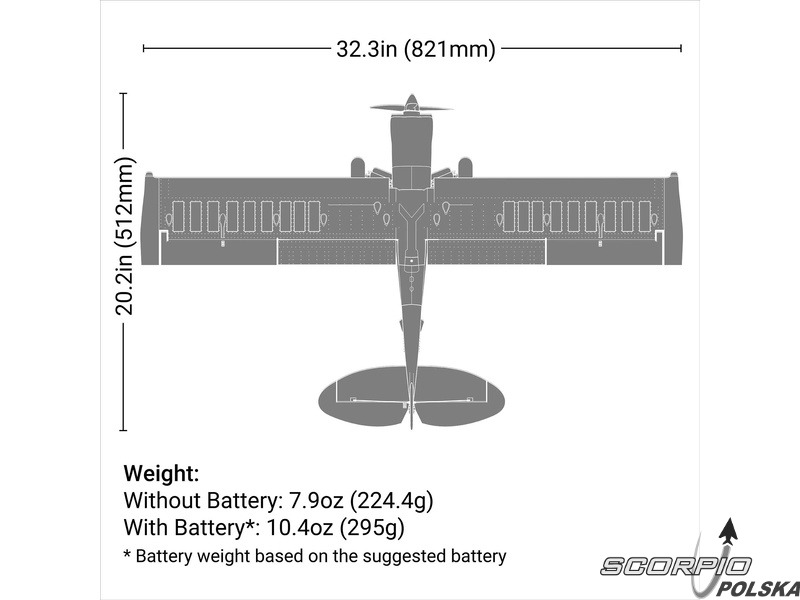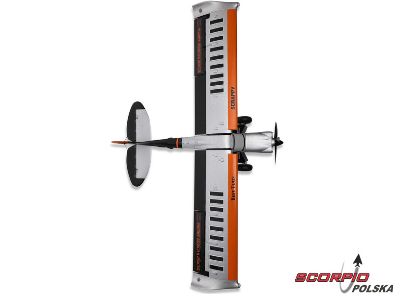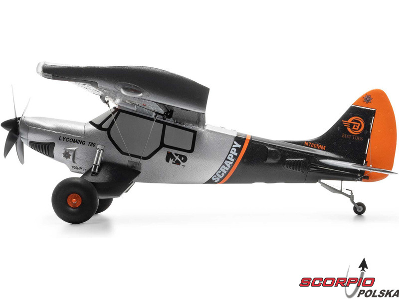 Model samolotu RC E-flite Micro Scrappy o rozpiętości skrzydeł 0,8 m jest licencjonowaną repliką samolotu znanego pilota i konstruktora Mike'a Pateya. Podobnie jak oryginał, model posiada cechy STOL (start i lądowanie na krótkim pasie), amortyzowane podwozie z dużymi miękkimi oponami w stylu Tundra, klapy, sterowane podwozie ogonowe i atrakcyjne oświetlenie LED. Wydajny silnik bezszczotkowy ze specjalnym 4-łopatowym śmigłem umożliwia zasilanie akumulatorem 3S lub 4S LiPo. Zapewnia to spokojne i bardziej sportowe loty akrobacyjne dla średnio zaawansowanych i zaawansowanych pilotów. Ta wersja BNF Basic jest wyposażona w odbiornik Spektrum z ulepszoną technologią AS3X+, która jeszcze lepiej stabilizuje lot przy wietrze i turbulencjach, a także opcjonalny system SAFE Select dla łatwiejszego i bezpieczniejszego sterowania.