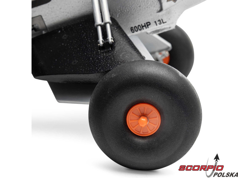 Ponadwymiarowe opony w stylu tundra na głównym podwoziu z drutu doskonale amortyzują nierówności. Umożliwiają jazdę, start i lądowanie na różnych nawierzchniach, z którymi większość modeli tej wielkości nie radzi sobie – od trawiastych nawierzchni, które znajdują się w wielu parkach i na boiskach sportowych, po żwirowe drogi i utwardzone nawierzchnie.