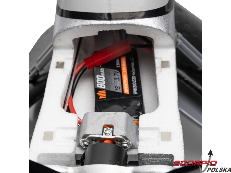 Model ma zainstalowany silnik, regulator, serwomechanizmy i odbiornik Spektrum 2,4 GHz, więc wszystko, co należy zrobić, to sparować odbiornik z kompatybilnym nadajnikiem, dokończyć montaż i lecieć! Akumulatory i ładowarka nie są dołączone do zestawu.