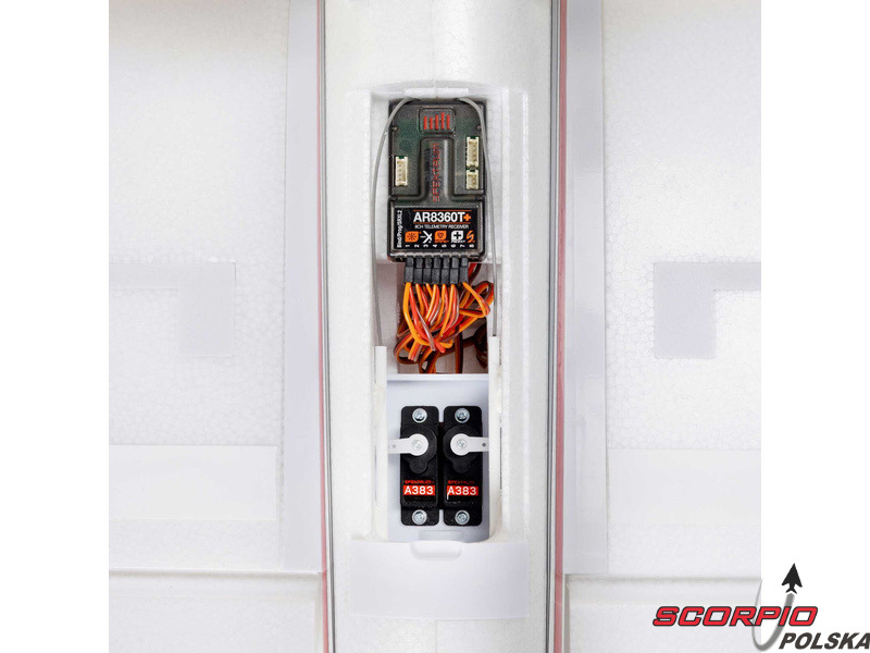 8-kanałowy lotniczy odbiornik Spektrum AR8360T+ DSM2/DSMX z telemetrią i obsługą Spektrum SMART, posiada 3-osiowy żyroskop, nową stabilizację AS3X+ i funkcję SAFE. Zintegrowany czujnik barometryczny. Możliwość podłączenia opcjonalnego odbiornika SRXL2.