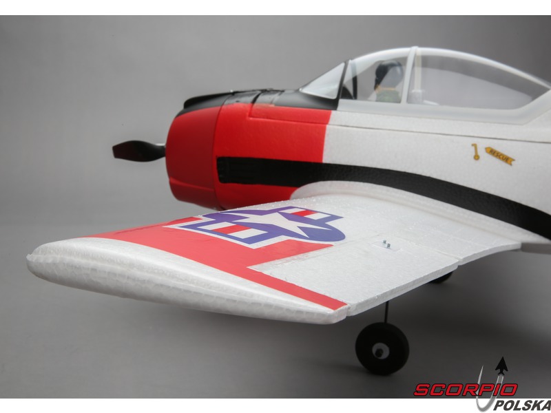 T-28 BNF jest kompletnym, gotowym zestawem, który trzeba uzupełnić swoim nadajnikiem Spektrum oraz akumulatorem LiPo 1800-2200 mAh i można latać. Kadług i skrzydła zrobione są z EPP!