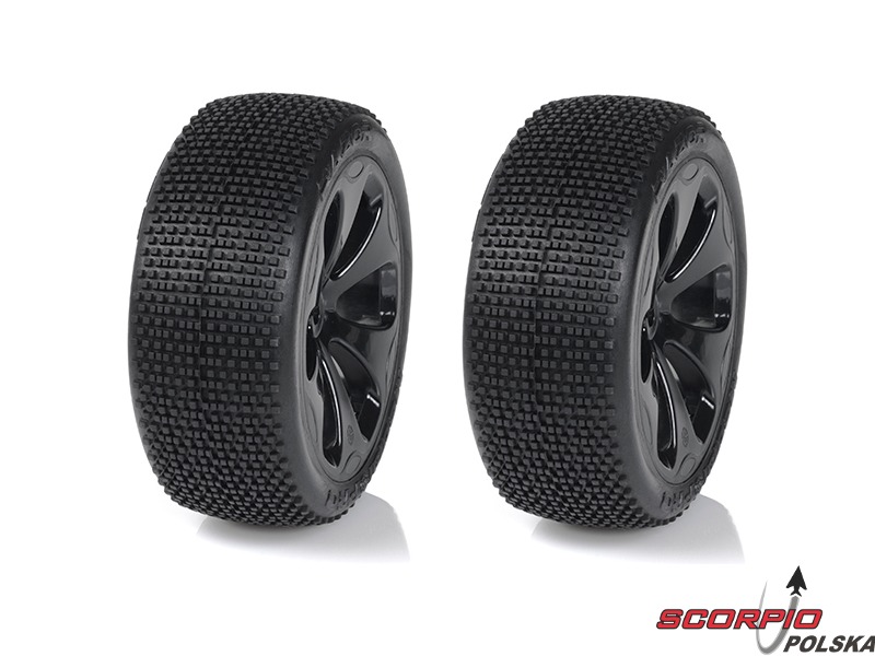 Komplet kół Medial Pro 3.3" Razor z tarczą Raptor pro do modeli samochodów RC. Rozmiar tarczy ø 84 x 42 mm, rozmiar opony ø 115 x 44 mm, sześciokąt 12 mm z przełożeniem 24 mm, kolor czarny, rodzaj mieszanki - M4 super miękka.