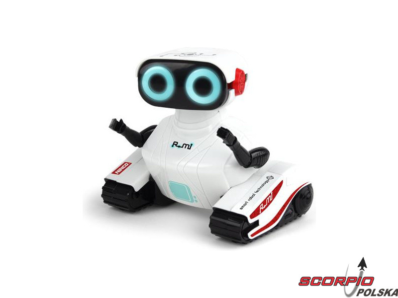 Zabawny robot zdalnie sterowany dla dzieci od 4 lat – NINCO NBOTS R-MI. Robot jeździ do przodu, do tyłu, w lewo, w prawo i ma świecące oczy. Za pomocą przycisku na pilocie można aktywować tryb DEMO, w którym robot wykonuje serię zaprogramowanych ruchów tanecznych. Robot wydaje charakterystyczne dźwięki, które można również włączyć lub wyłączyć za pomocą pilota. Zasilanie zapewnia 5 baterii AA 1,5 V (3 sztuki do robota, 2 sztuki do pilota).