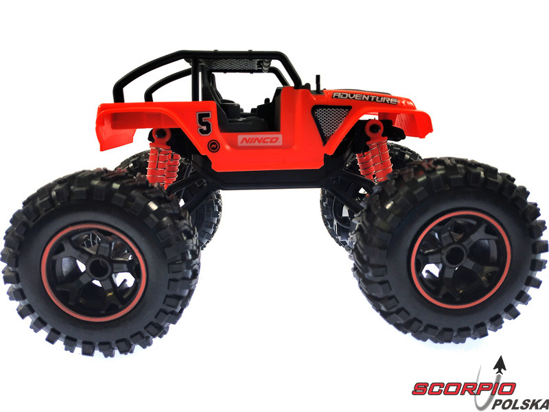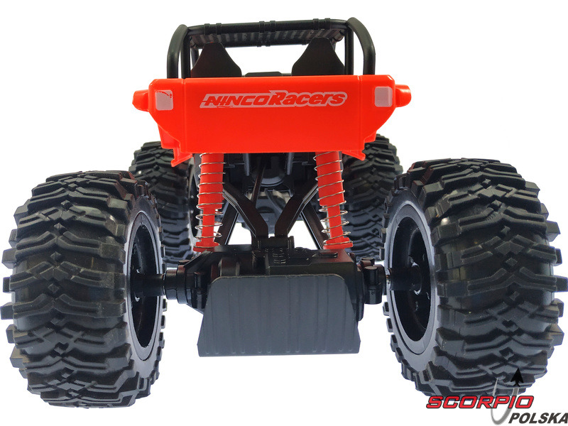 Zdalnie sterowana zabawka dla dzieci NINCORACERS Adventure w wersji Monster Truck to samochodzik w skali 1:16, odpowiedni zwłaszcza do jazdy w pomieszczeniach. Dzięki miękkim oponom i amortyzowanym osiom samochodzik poradzi sobie nawet z trudniejszymi przeszkodami, które przygotują dla niego dzieci. Napęd samochodu zapewnia silnik elektryczny, który przenosi moc na tylne koła.