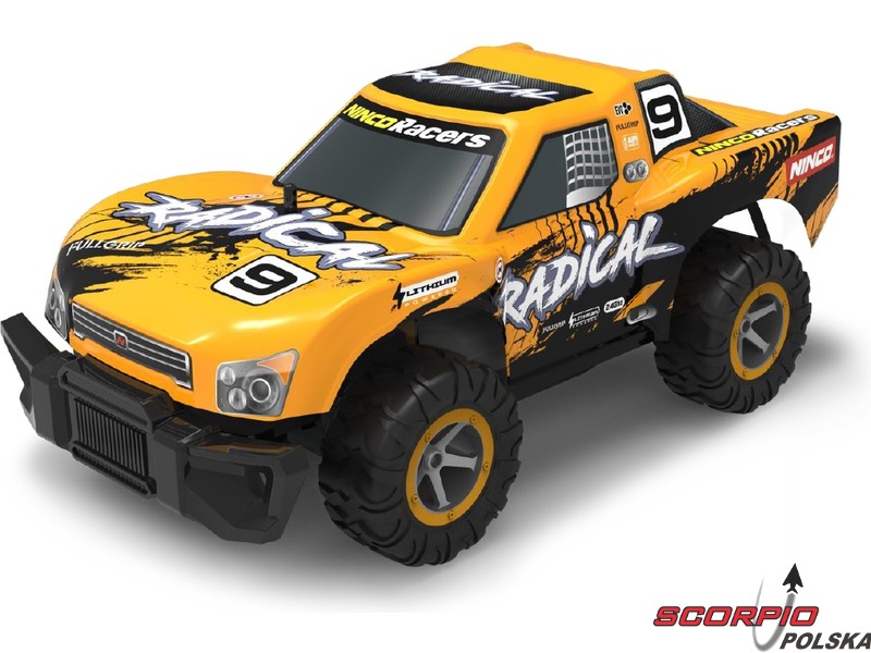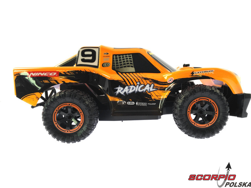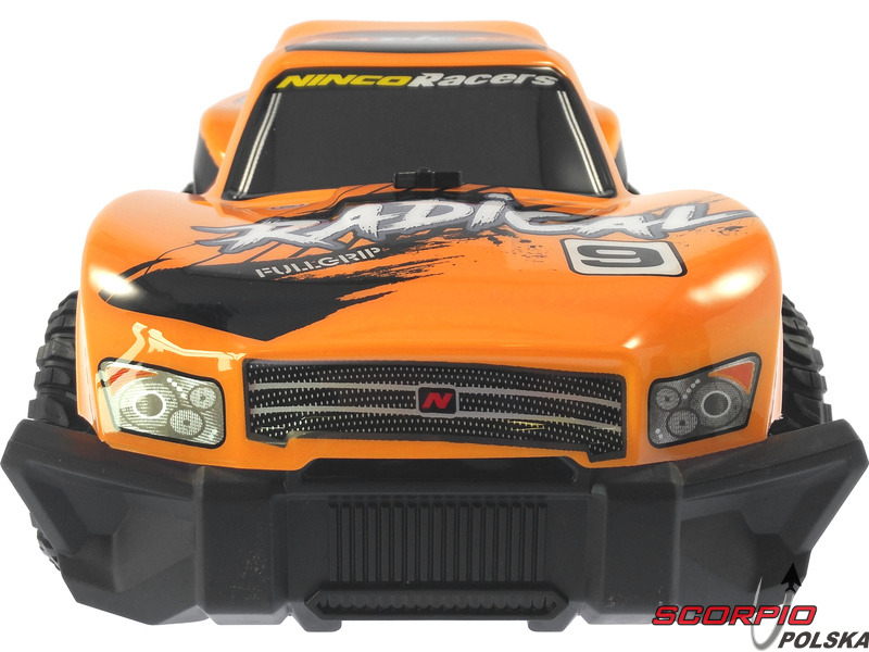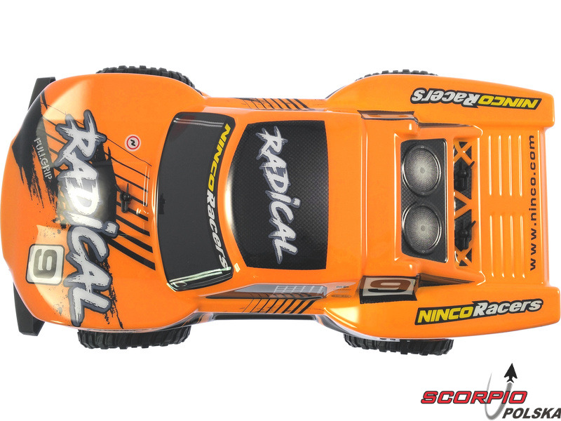 Zdalnie sterowana zabawka dla dzieci NINCORACERS Radical to samochód w skali 1:14. Nadaje się do jazdy w pomieszczeniach i na zewnątrz na twardych powierzchniach lub niskiej trawie. Samochód ma napęd na tylne koła. Ponieważ dzieci często się zderzają, jest wyposażony w solidny przedni zderzak.