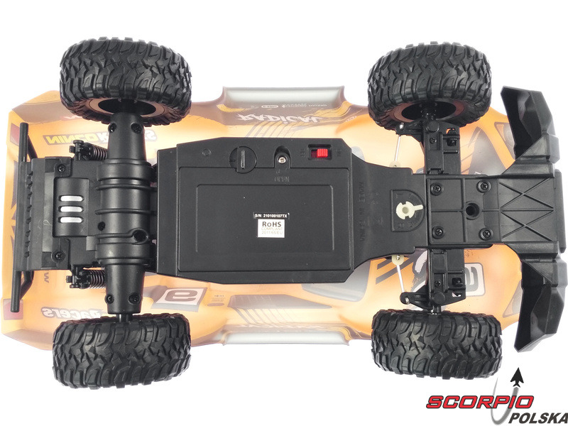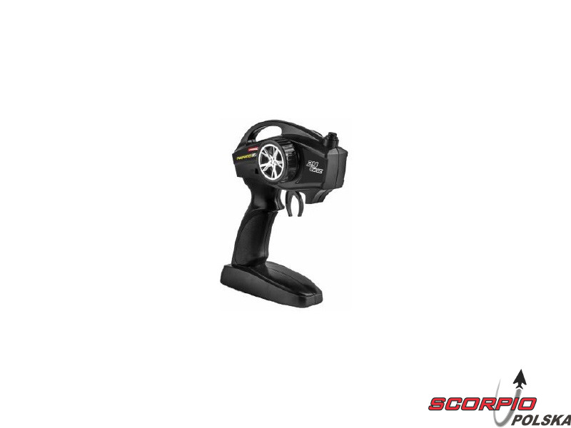 Sterowanie modelem zapewnia nadajnik pistoletowy, podobnie jak w przypadku dużych modeli. Nadajnik działa w paśmie 2,4 GHz, co zapewnia niezawodną transmisję sygnału bez zakłóceń i przerw. Nie trzeba się już martwić, że złamie się antena, ponieważ jest ona zintegrowana z obudową nadajnika.