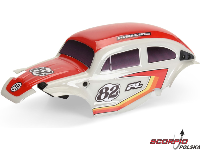 Malowana karoseria Pro-Line Class 1 VW Beetle niebieska (1 szt.) z zawartymi kołami Chrome Diablo 12 mm i oponami Flat Iron M/T (4 szt.). Przeznaczona do modeli samochodów RC Arrma Typhon GROM w skali 1:14. Karoseria wykonana z wytrzymałego poliwęglanu.