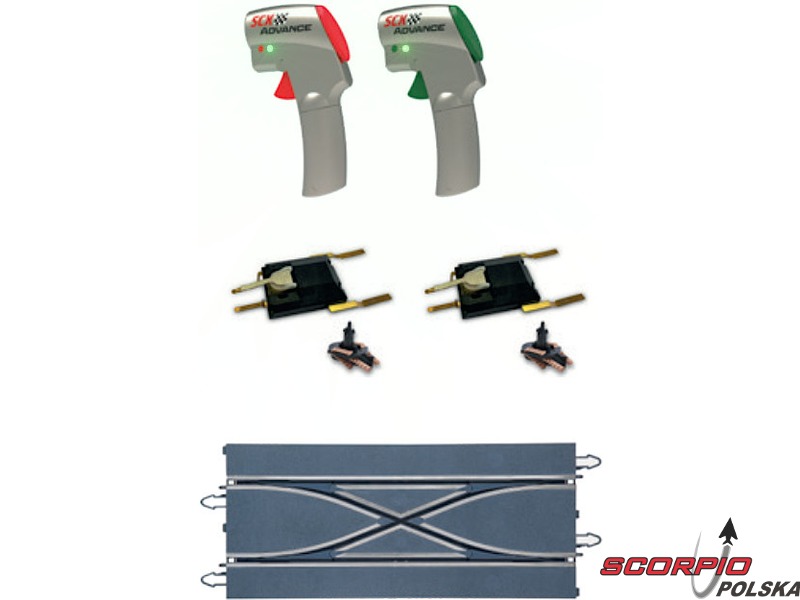 SCX Advance Pole Position 2.0 w klasycznej skali 1:32 – doskonały cyfrowy tor wyścigowy z możliwością wyprzedzania na skrzyżowaniu, prostą Bluetooth, mostem, barierkami i bandami. Trzy bezprzewodowe kontrolery z przełącznikiem zwrotnicy, trzy cyfrowe autka z światłami LED. Powierzchnia rozkładania: 252 x 180 cm. Długość toru: 7,22 m.
