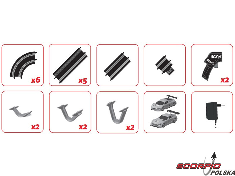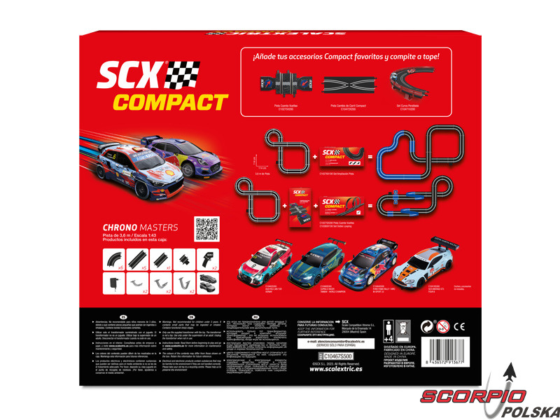 Tory wyścigowe SCX Compact w skali 1:43 są przystępne cenowo, a dzięki mniejszym rozmiarom można je łatwo rozłożyć nawet w pokoju dziecięcym. Ergonomia kontrolerów jest również dostosowana do potrzeb dzieci, dzięki czemu idealnie leżą one w dłoni i można cieszyć się niekończącymi się wyścigami. Pomimo mniejszych rozmiarów tor wyścigowy dla dzieci zachowuje doskonałą jakość wykonania detali.