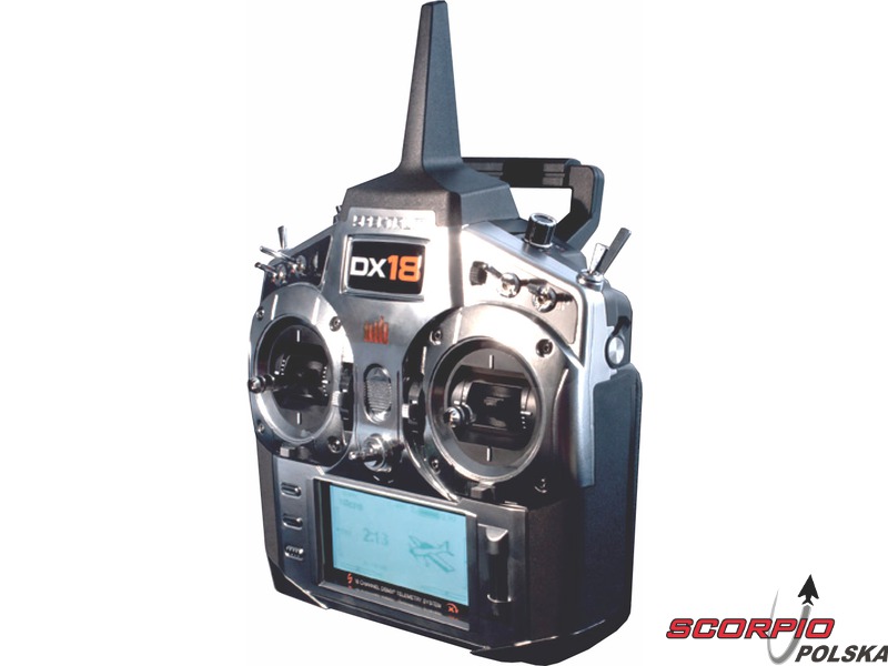 Aparatura RC Spektrum DX18 jest przeznaczona dla najbardziej zaawansowanych zastosowań modelarskich dzięki dużej ilości staerowanych funkcji. W zestawie znajduje się 18 kanałowy nadajnik DX18, 9 kanałowy odbiornik AR9020 X-Plus, przy czym pełną ilość 18 kanałów można łatwo osiągnąć podłączeniem modułu rozszerzającego X-plus (SPMXP8000). Wystarczy podłączyć moduł do AR9020 i sparować z nadajnikiem. DX18 będzie automatycznie wykrywać dalsze kanały i tym samym przypisać dalsze funkcje. Software pochodzi z nadajnika DX10T i zawiera programy dla Air, Heli i szybowców, aż faz lotu dla Akro i Heli i 10 faz lotu dla szybowców.