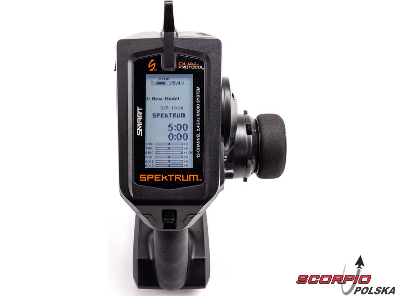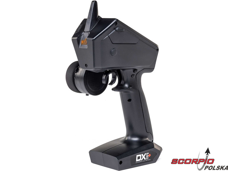 Pistoletowy 12-kanałowy nadajnik Spektrum DX Pro+, charakteryzujący się doskonałą ergonomią i podwójnym protokołem DSMR+ oraz SLT, umożliwiającym sterowanie szeroką gamą modeli RC z wieloma funkcjami. Nadajnik zawiera technologię Spektrum Smart, a przy użyciu dodatkowych komponentów Spektrum można uzyskać doskonały przegląd modelu, w tym dane telemetryczne i możliwość bezpośredniego ustawiania regulatora Firma Prog. Nadajnik ma proste i logicznie zorganizowane menu, pamięć na 250 modeli, duży, przejrzysty wyświetlacz i niewielką masę. Wśród nowych funkcji wersji DSMR+ znajduje się obsługa wielu różnych mikserów, przełączników logicznych, hamulca awaryjnego, a także możliwość zmiany wejść i wykonywania innych zaawansowanych operacji programowania.