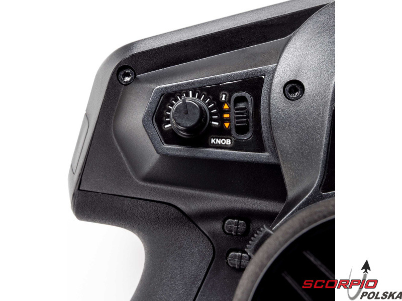 Idealnie wyważony nadajnik o doskonałej ergonomii, który można dostosować do indywidualnych wymagań. Regulacja sztywności gazu i kierownicy, łatwa wymiana gumowego uchwytu na obudowie nadajnika.