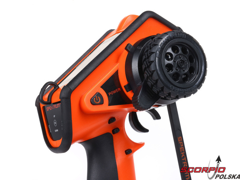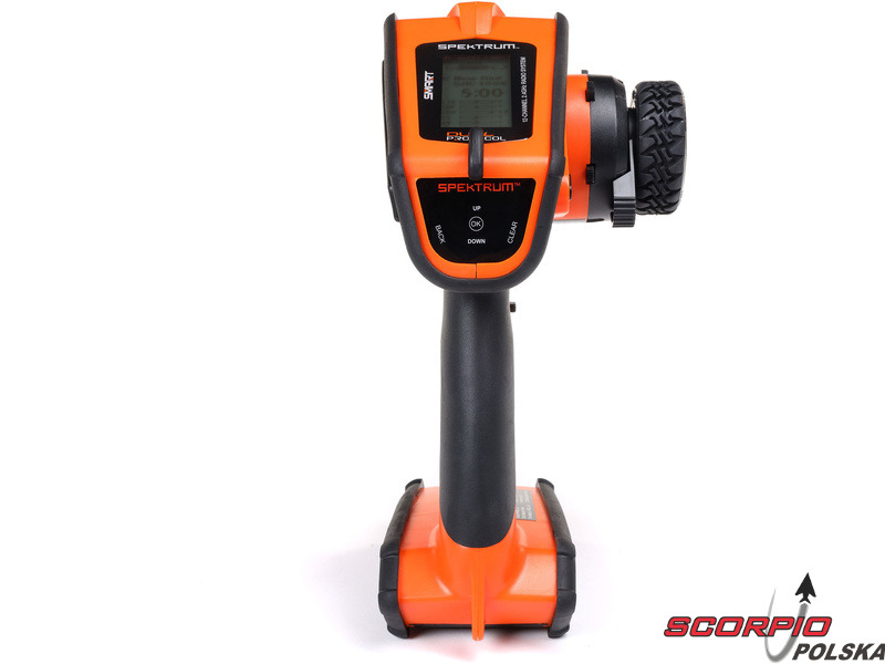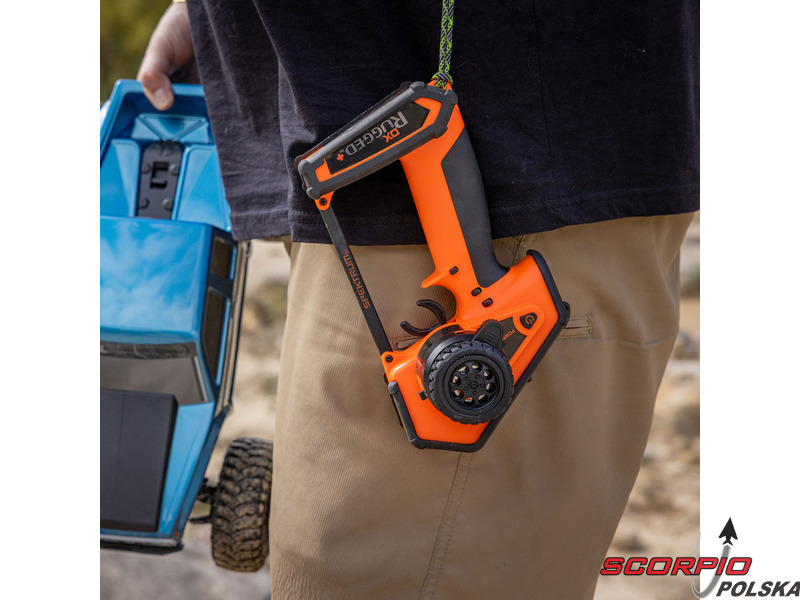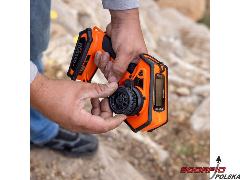 Pistoletowy 12-kanałowy nadajnik Spektrum DX Rugged+ pomarańczowy z podwójnym protokołem DSMR+ i SLT, który umożliwia sterowanie szeroką gamą modeli RC z wieloma funkcjami. Nadajnik zawiera technologię Spektrum Smart, a przy użyciu dodatkowych komponentów Spektrum zyskuje się doskonały przegląd modelu, w tym dane telemetryczne i możliwość bezpośredniego ustawienia regulatora Firma Prog. Nadajnik ma proste i logicznie zorganizowane menu, pamięć na 20 modeli, duży, przejrzysty wyświetlacz i niewielką masę. Wśród nowych funkcji wersji DSMR+ znajduje się obsługa wielu różnych mikserów, przełączników logicznych, hamulca awaryjnego, a także możliwość zmiany wejść i wykonywania innych zaawansowanych operacji programowania.