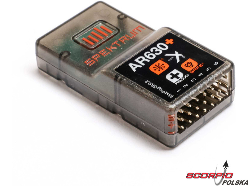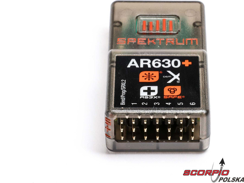 Odbiornik RC Spektrum AR630+ jest kompatybilny z systemem Spektrum SMART i transmisją telemetrii Smart. Zaletą jest wbudowana nowa stabilizacja AS3X+, która koryguje wpływ wiatru i turbulencji za pomocą 3-osiowego żyroskopu MEMS i ekskluzywnego oprogramowania oraz funkcja SAFE, która zapewnia kontrolę nad lotem. Kompaktowe wymiary odbiornika z wbudowaną anteną w obudowie. Obsługa nowej funkcji pobierania ustawień z odbiornika (Smart Transmitter Model Files).
